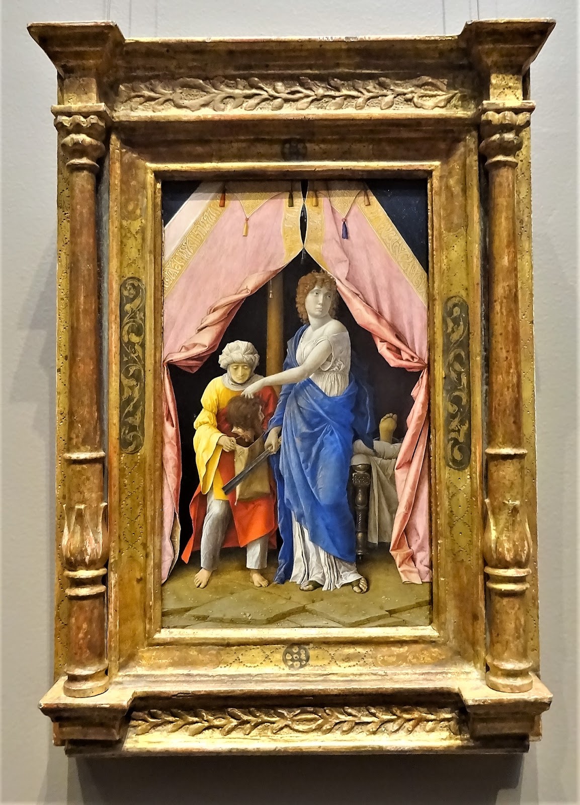 Les débuts de la Renaissance avec le grand Andrea Mantegna, ce magicien du trompe-l'oeil et du détail. Ici, il se montre fabuleux coloriste, en osant un fond complètement noir pour détacher ses masses colorées. Sa Judith aux cheveux courts, presque masculine, expose une farouche détermination.
