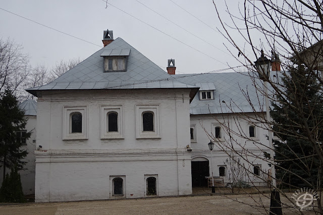 Je poursuis donc dans le quartier et découvre une demeure apparemment ancienne. Elle m'évoque les constructions du XVIe siècle de Kitai-Gorod, comme le palais des boyards Romanov, avec un type architectural très voisin et ce grand escalier extérieur.