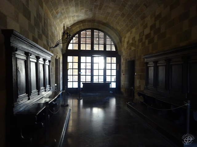Les Hospitaliers ont déserté les lieux depuis plusieurs siècles, il ne faut pas s'attendre à un intérieur tel qu'il l'était au Moyen-Âge. Quelques meubles sont présents, sans que je sache s'ils proviennent du palais.
